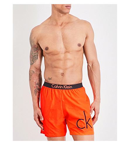 Calvin Klein Synthetic Mens Side Logo Swim Shorts Orange For Men