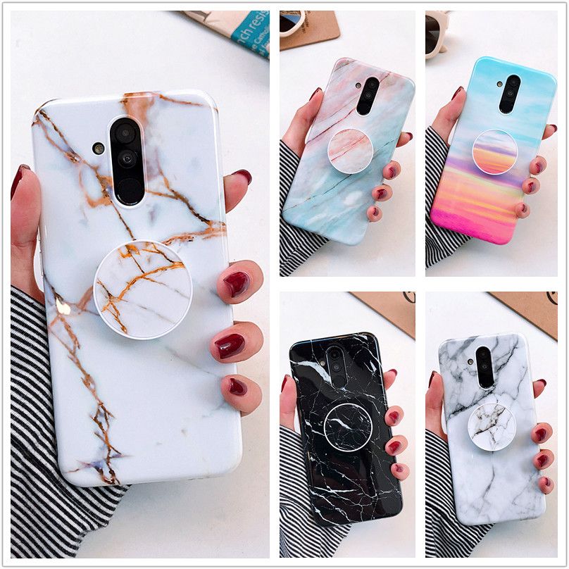Luxury Soft Tpu Cover Expandable Bracket Phone Holder Stand Marble