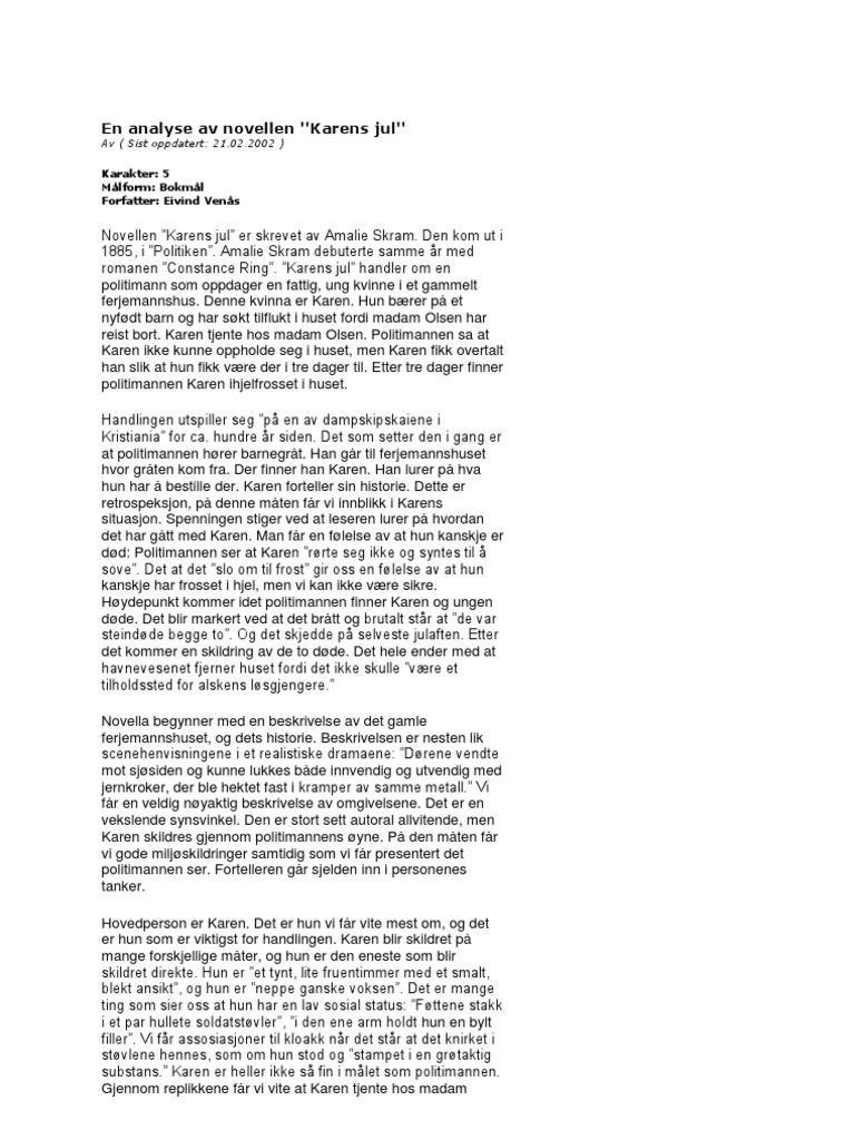 Karens jul analyse. Analyse af karens jul en masse personkarakterstikker miljøbeskrivelse miljøkarakterstik fortælleren hvilken fortæller er der i teksten. Analyse av karens jul konklusjon tema. Novella karens jul av amalie skram blei først trykka i avisa politikken i 1885. Klassikere 2005 grappa musikkforlag a s released on.