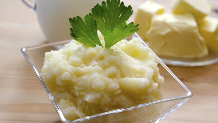 Krydderkrebinetter Med Kartoffelmos Og Flodetomatsauce